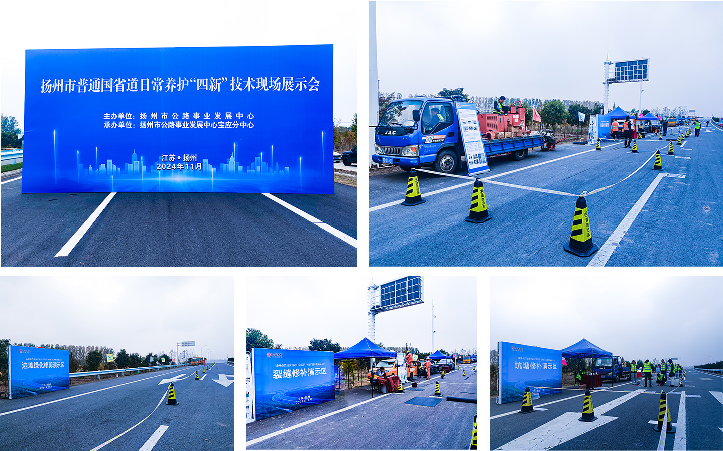 11月13日下午,扬州市公路事业发展中心在331省道扬州段(宝应)K144路段召开了“扬州市普通国省公路日常养护‘四新’技术现场展示会”。扬州市公路事业发展中心主任殷成胜、副主任蒋华平,以及该中心养护科、安全科、服务设施科、农路科的有关负责人,扬州公路各分中心主任和养护部门负责人等出席了此次展示会。展示会以“新技术、新工艺、新材料、新设备”为主题,设置了公路边坡绿化修剪、裂缝修补、坑塘修补、中分带绿化修剪等四个演示区,旨在展示最新的公路养护技术和设备。